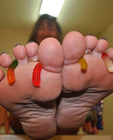 My feet were being massaged by my slave as I munched on gummy worms. Being nice I decide to share my snack, but he has to eat from my toes. I love to tease him too. Of course he must also clean my feet after to make sure they are not sticky.